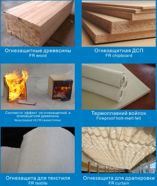 1. Fireproof treatment for spay or immersion for wood, textile, paper and fiber application.